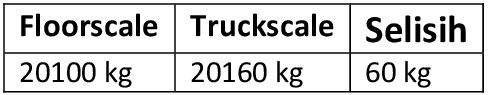 Jadi selisih antara kedua truckscale tersebut adalah 0,4 %